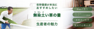 「佐野畳屋」は、福岡県田川市に工房を構える、国産・無染土畳専門店。福岡県内 ( 福岡市・田川市・飯塚市・直方市・他地域 ) で 畳の新調、張り替え( 表替え・裏返し ) ならお任せください!